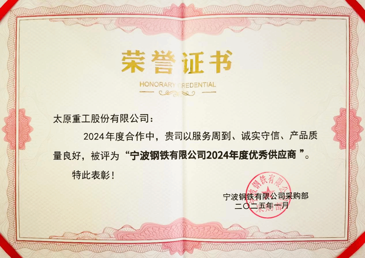 近日,憑借頂尖的技術(shù)實(shí)力、過(guò)硬的產(chǎn)品質(zhì)量、優(yōu)質(zhì)的用戶服務(wù),太重榮獲“寧波鋼鐵有限公司2024年度優(yōu)秀供應(yīng)商”稱號(hào)。值得一提的是,公司已連續(xù)四年獲得此項(xiàng)榮譽(yù),成為用戶供應(yīng)商體系中的典范。
